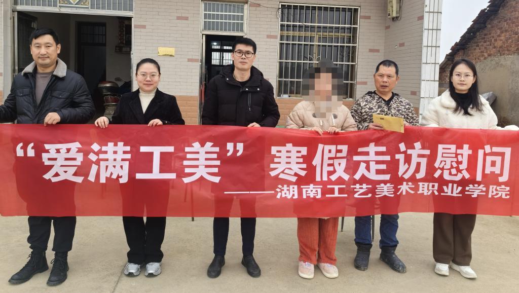 为深入贯彻落实《高校思想政治工作质量提升工程实施纲要》《全国学生资助管理中心2024年学生资助工作要点》精神,积极响应学校“爱满工美”首届资助育人文化节活动要求,增强思想政治教育和资助育人工作的实效性。环艺学院于1月18日在党总支副书记刘利君带领下,吴梦帆、靳小水和段心怡三位辅导员老师共同赴益阳市烂柴港村、湘潭市岳塘区两地对家庭经济困难生进行走访慰问活动。