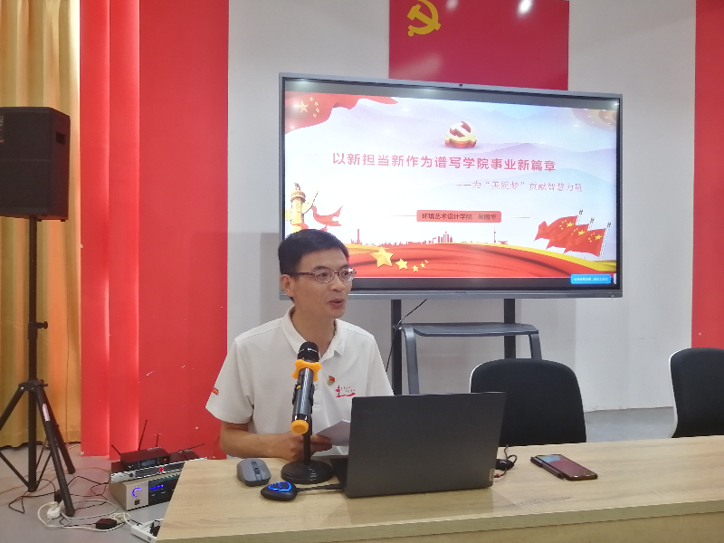 为推动学院主题教育规范有序高质量开展,5月31日下午,学院党总支书记吴国华以《以新担当新作为谱写学院事业新篇章 为“美院梦”贡献智慧力量》为题,为全院教职工讲授主题教育专题党课。