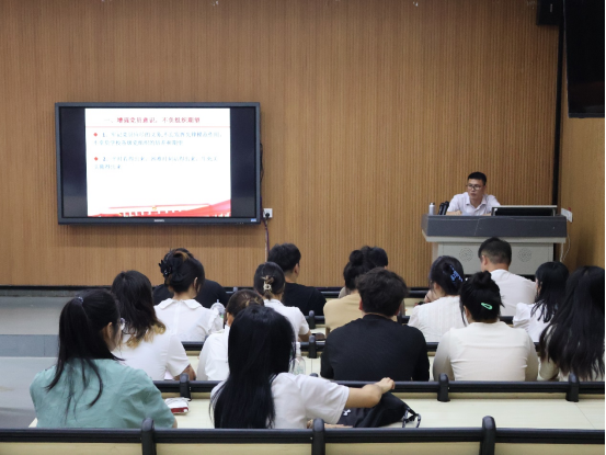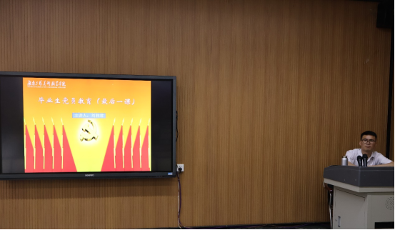 为进一步落实党员教育、管理和服务长效机制,落实立德树人根本任务,增强党员“四个意识”,坚定“四个自信”,坚持“两个维护”,激励全体毕业生党员坚定信念、胸怀祖国,牢记党员责任、脚踏实地、担当作为,以良好的精神风貌踏入新的征程,以实际行动和优异的成绩为党旗增辉,6月15日,环艺学院在尚美楼214开展毕业生党员最后一课,此次党课由学院党总支副书记刘利君主讲,全体毕业生党员参与党课学习。