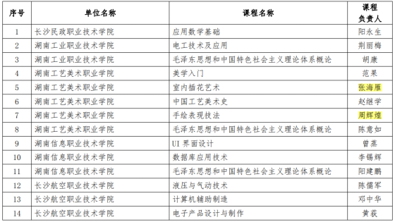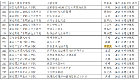 近日,根据教育厅《关于公布2020年湖南省职业院校线上教学优秀案例及教学资源建设与教学改革研究项目评审结果的通知》(湘教通 〔2020〕289号),环艺学院胡隆文《园林景观电脑表现》课程获批认定省级精品在线开放课程,张海雁《室内插花艺术》、周辉煌《手绘表现技法》2门课程获批立项省级精品在线开放课程。具体名单如下: