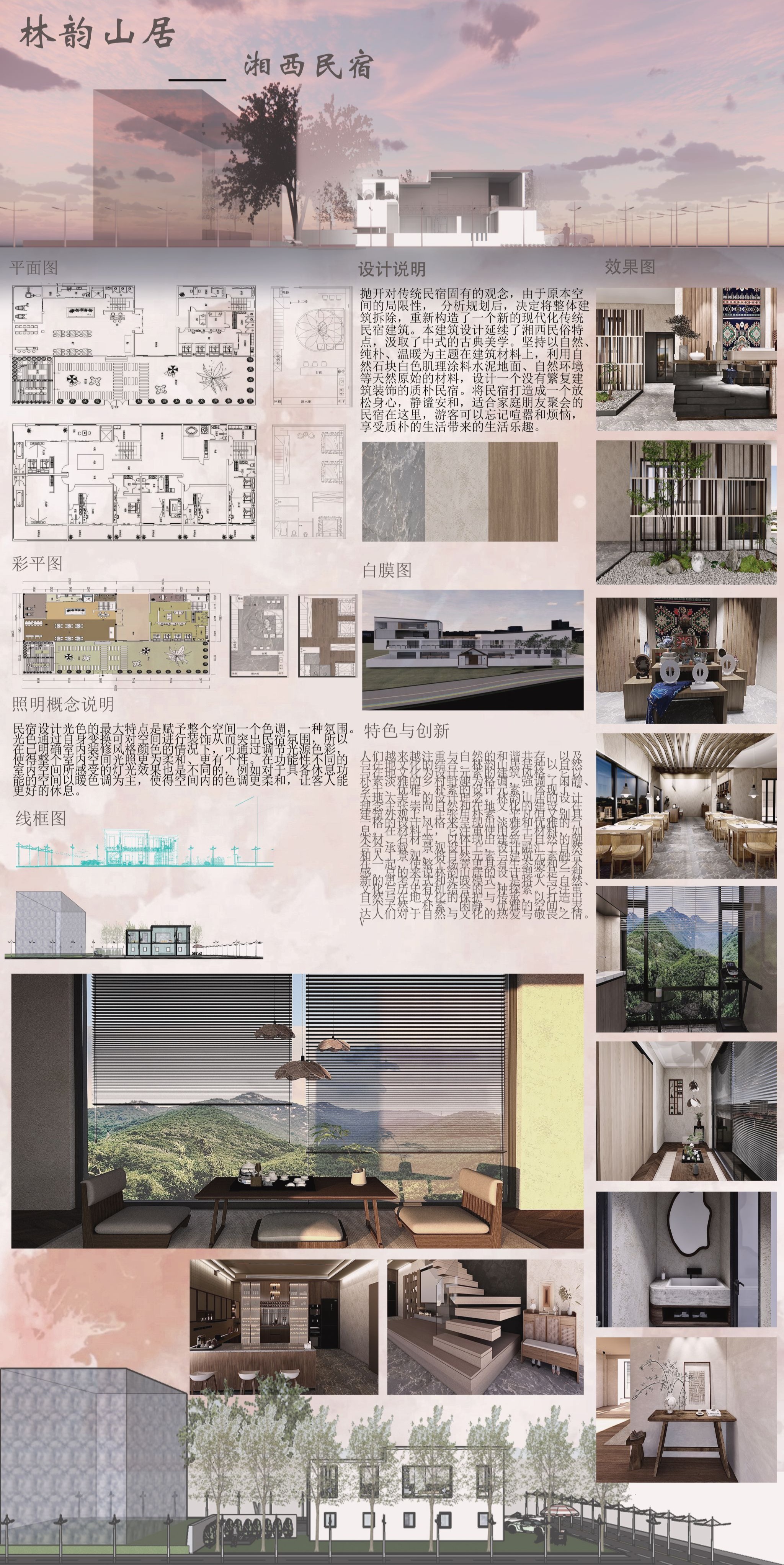 本册作品集收录了 2024 届环境艺术设计、室内艺术设计、建筑设计、展示艺术设计 4 个专业( 7 个专业方向)的毕业设计优秀作品,真实地反映了学院强化“三全育人”、服务地方经济、助力乡村振兴、深化产教融合的办学理念与办学成果。值此群贤毕至之际,祈盼社会各界共赏创意、品评设计,以助我院继续以昂扬之势提升办学质量,培养更多高素质技能人才回馈社会!