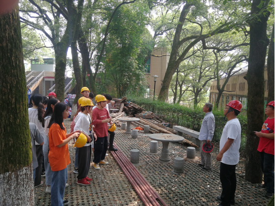 在益阳市一中信义教学楼施工工地现场实习期间,同学们个个兴致高昂,对古建修复知识表现出强烈的求知欲望,常把公司文物修缮专家王殿亭老师团团围住,积极提问,王老师也不厌其烦地向大家解释和传授古建专业知识。