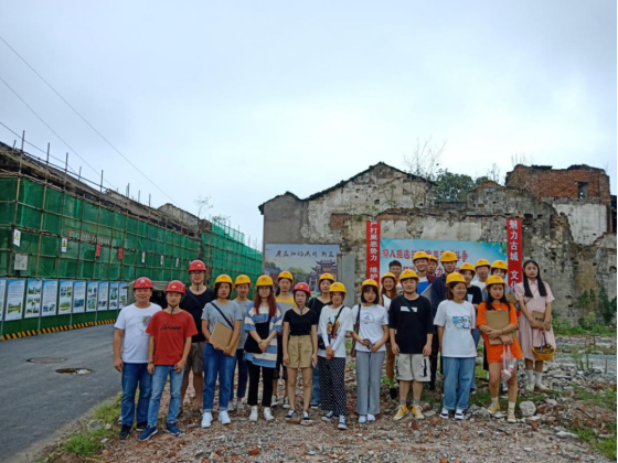 (校企双方指导老师与同学们在益阳大码头文物修缮施工工地前合影)