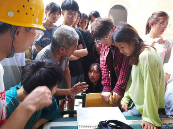 (古建修缮专家王殿亭老师向同学们详细讲解古建知识)