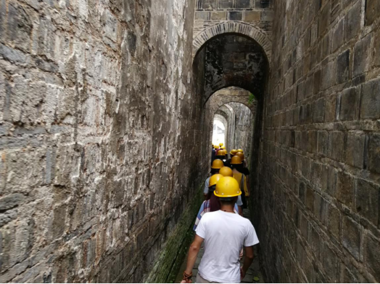 在益阳大码头明清古镇,同学们参观了公司2016年修缮的明清古巷,大家饶有兴趣地对古建筑元素进行了仔细的识别,对大码头明清古巷巷道拱卷、砖墙砌筑方式、墙体抹灰工艺、墙体修缮技法、梁架结构、木构件的雕刻与装饰、三合土工艺及古镇人文历史有了一定的了解。