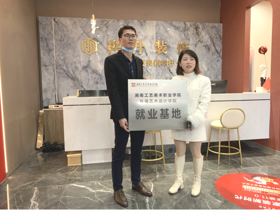 环艺学院党总支副书记刘利君为企业颁发“就业基地”牌匾