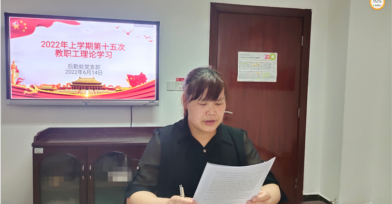 6月14日下午,后勤处党支部在致美楼106开展了本学期第十五次政治理论学习。会议由后勤处党支部书记刘军玉主持,后勤处(基建办)在校同志参加。