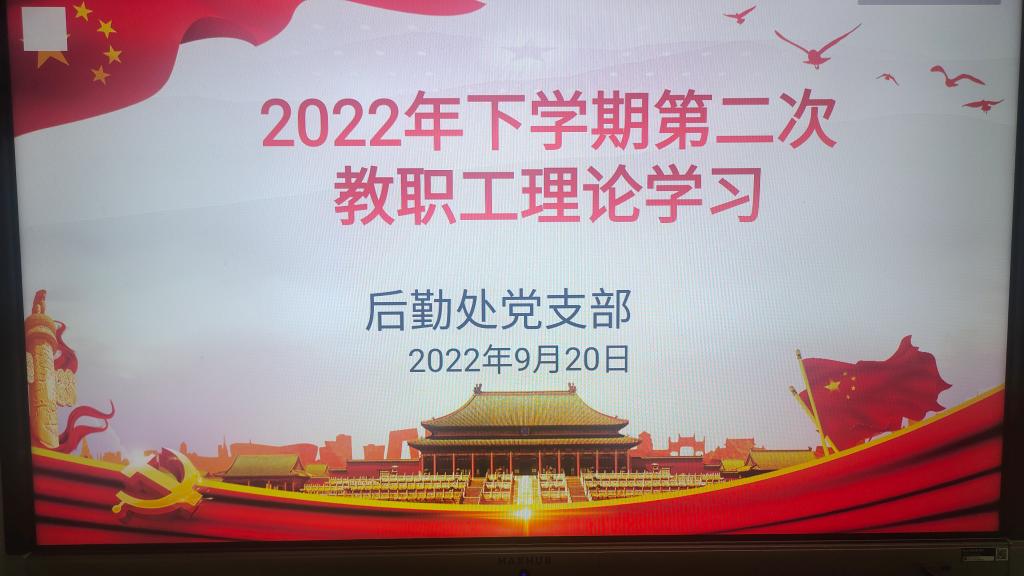 9月20日下午,后勤处党支部在致美楼106开展了本学期第二次政治理论学习。会议由后勤处党支部组织纪检委员符桐主持,后勤处(基建办)在校同志参加。