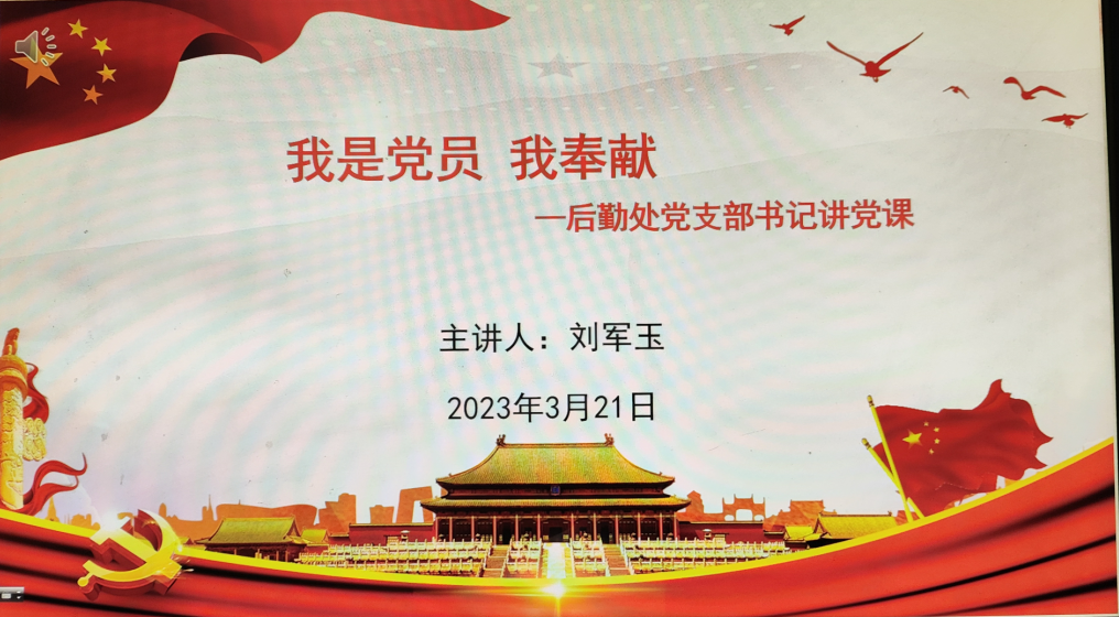 为进一步学习宣传党的二十大精神,切实引导员工在实际工作中全面贯彻落实二十大精神,3月21日下午,后勤处党支部书记刘军玉以《我是党员 我奉献》为题,讲了一堂精彩生动的党课。