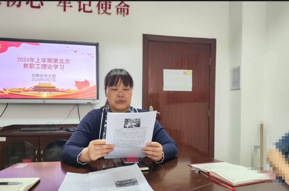 5月7日下午,后勤处党支部在致美楼106开展了本学期第五次政治理论学习暨爱国主义主题党日活动。会议由后勤处党支部书记刘军玉主持,后勤处(基建办)在校同志参加。