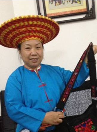 奉雪妹,瑶族,1959年生,湖南隆回人。第一批国家级非物质文化遗产项目挑花(花瑶挑花)代表性传承人。奉雪妹8岁随母亲学艺,因天资聪慧,十一二岁就已经是村寨里小有名气的挑花能手了。她在保持花瑶传统挑花风格的基础上,对部分存在缺陷的挑花服饰进行改进,如包头、绑腿和腰带。她的挑花作品以动物图案居多,并且是图案套图案,均衡、对称。色彩对比强烈,主体图案为黑白两色,周围配七彩丝线挑绣的彩色花。奉雪妹挑花以平粗土布作底,白色纱线挑制,不需描图设计、做绣架,胸有成竹,具有鲜明的地域性和民族性,代表作品有《团鱼呈祥》《天鹅展翅》《雄鹰捕食》等。2017年,奉雪妹受邀担任我校服装艺术设计学院指导教师,并成立大师工作室。