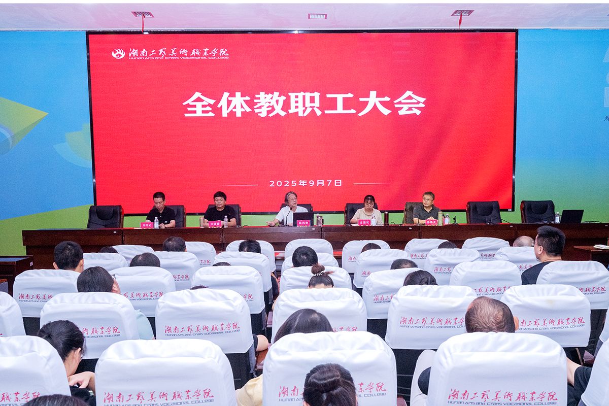 9月7日,学校在致美楼五楼学术报告厅召开2025年秋季学期全体教职工大会,安排部署新学期工作。党委书记陈鸿俊、校长夏能权及全体校领导出席大会,党委副书记汪泳波主持会议,全体教职工参加。长沙基地、东校区与会人员参加视频会议。