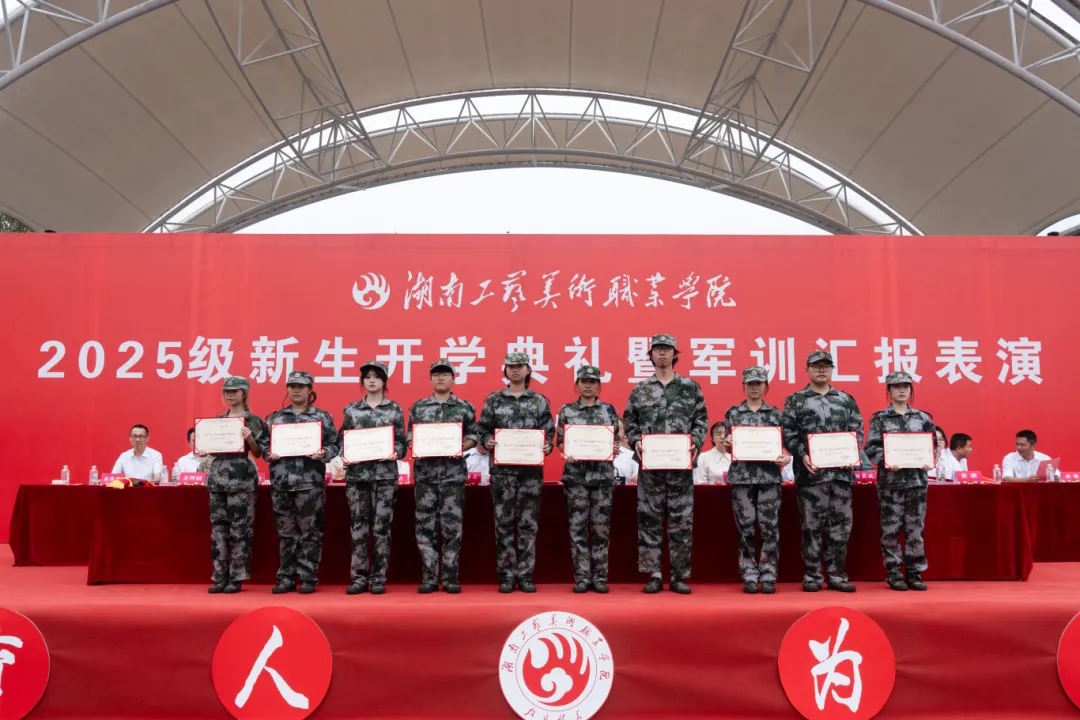 副校长刘英武、张华宣读了《关于表彰2025级新生军训先进单位和个人的决定》和2025级新生奖学金名单。