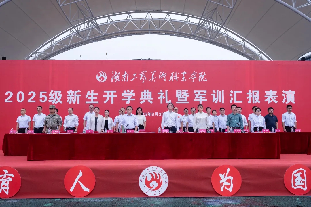 典礼现场,陈鸿俊以《以青春之我铸就民族复兴的工艺美术英才》为题,为2025级新生讲授“开学第一课”。他寄语广大青年学子:一是铭记历史守初心,从抗战精神中汲取奋进力量。刚刚过去的纪念中国人民抗日战争暨世界反法西斯战争胜利80周年大会,展示了国防和军队现代化建设的伟大成就,彰显了中华民族的团结意志和坚定决心。新时代青年的人生发展黄金期与民族复兴关键期历史性叠合在一起,强国建设、民族复兴的接力棒历史性地落在了这一代人身上。同学们要将爱国情怀融入血脉,转化为前行的动力,让红色基因代代相传。二是淬火成钢砺意志,将军训成果转化为成才基石。同学们要将军训中养成的优良作风和顽强意志,转化为刻苦学习、追求卓越的强大动力,尽快完成从被动接受到主动求索的转变,努力提升学习能力、抗压能力、创新能力和组织能力,为成长成才奠定坚实基础。三是匠心筑梦担使命,以专业技能报效伟大时代。同学们要弘扬“执着专注、精益求精、一丝不苟、追求卓越”的工匠精神,立足专业特色,将艺术创作与时代需求紧密结合。要扎根传统文化,守正创新;服务人民生活,学以致用;勇担文化使命,传承薪火。四是知行合一启新程,用实干精神书写青春华章。同学们要珍惜大学的宝贵学习时光,将个人理想融入国家发展大局,主动融入校园生活,积极参与实践活动,在知行合一中提升综合素质。