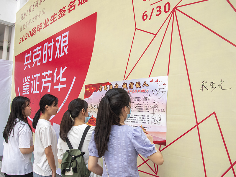 (毕业生代表在“廉洁从业”签名墙签名)