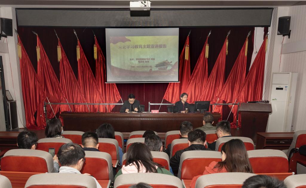 4月27日下午,学校校长陈鸿俊在蕴美楼104教室作党史学习教育宣讲报告。视觉传播设计学院全体教职工、学生党员、预备党员和校企合作处教职工聆听报告。视觉传播设计学院党总支副书记汤灿主持报告会。