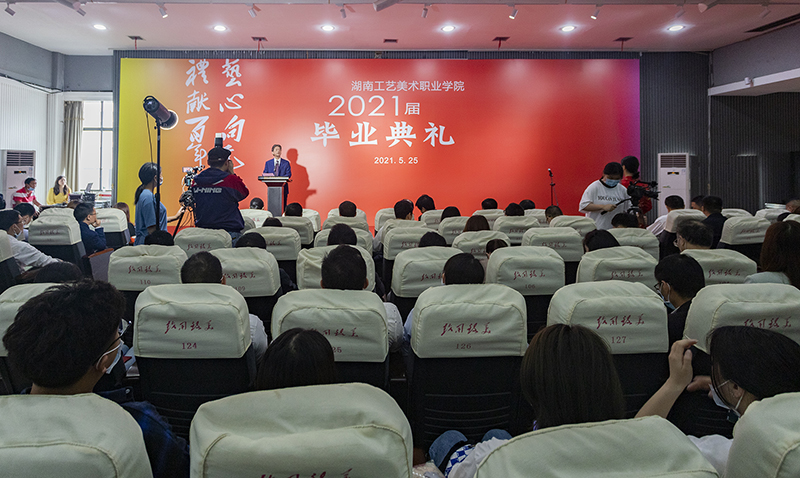 教师代表李蕾用袁隆平院士的8字成功秘诀“知识、汗水、灵感、机遇”寄语毕业学子,祝贺他们圆满完成学业,走向人生下一站,拥抱更加丰富、灿烂、多彩的明天。毕业生代表彭冬花回忆了大学三年的点滴生活,她表示,在人生的新征程中,将秉承“致用致美”的校训精神,为实现中华民族伟大复兴而奋斗。