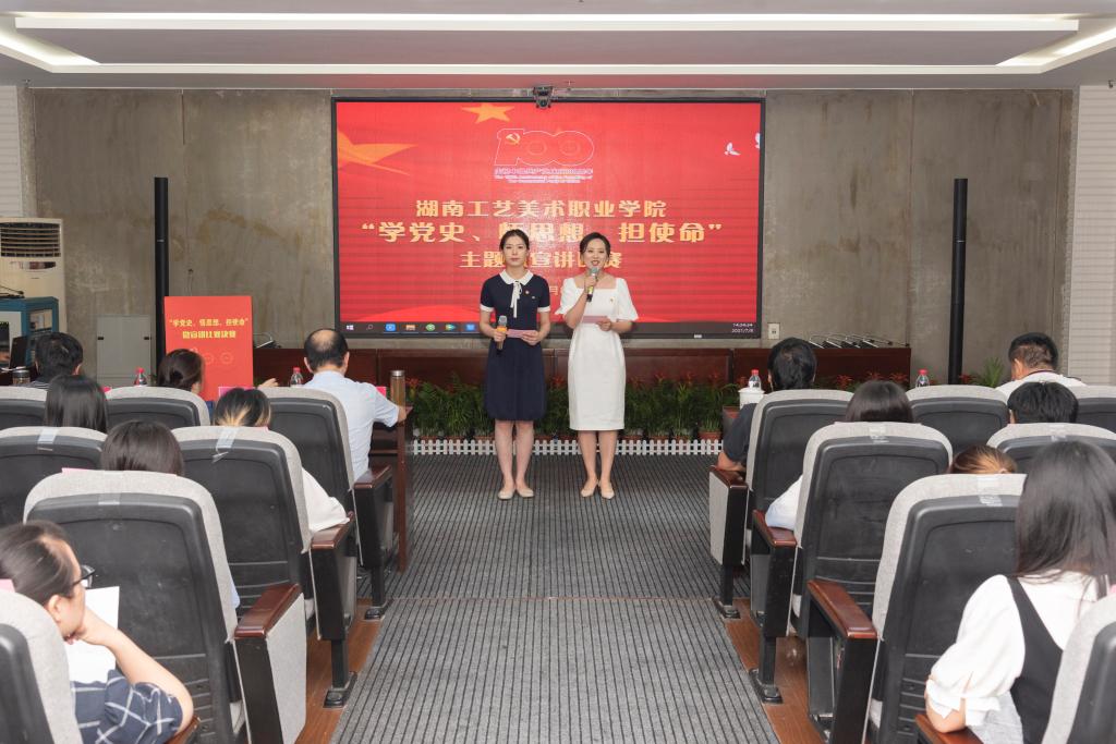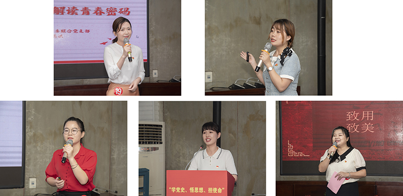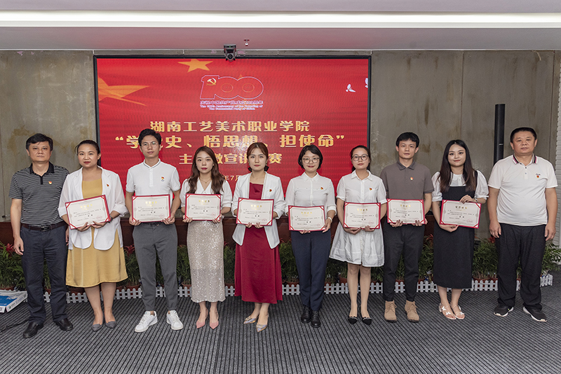 来自学生工作部、团委联合党支部的选手欧阳浩洪从讲述青年毛泽东四次来到益阳,开展游学调查、督学考察,指导党团建设和农民运动,到宋玺、黄文秀等新时代青年在实践中接续奋斗的故事,表达了自己始终坚持将青春理想化为报国行、强国志、爱国情的坚定信念。视觉传播设计学院党总支的蔡蕙心以《中国精神,在哪里?》为题,带领大家回顾了在不同历史时期体现中国精神的感人事迹,热情讴歌了中华民族在努力奋斗中不断彰显、升华和创新的中国精神。长沙基地综合管理办公室党支部的柳熙讲述了一代代中国共产党人团结带领全国各族人民实现从“站起来”、“富起来”到“强起来”的波澜壮阔的发展历程,阐释了新时代学校、教师和学生肩负的职责和使命。手工艺术学院党总支的彭冰如以一名朗读者的身份,用三封家书打开历史画卷,与大家分享了中国共产党百年风华的红色精神,号召新时代的青年在实现中华民族伟大复兴的接力赛中跑出更好的成绩。公共课教学部党支部的肖超颖从学校的逸美楼开始,讲述了中国共产党人矢志不渝,实现教育兴国的艰辛历程,呈现了党的十八大以来,一幅让人民满意的中国教育画卷,表达了一名党员教师坚定不移做“四有”好老师的致美初心。