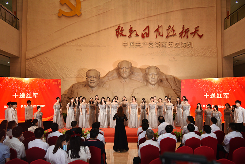 长沙高新区旺龙小学、湖南党史陈列馆、长沙高新区麓谷小学、长沙职业技术学院给现场观众带来了红色节目展演。