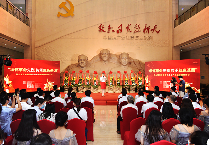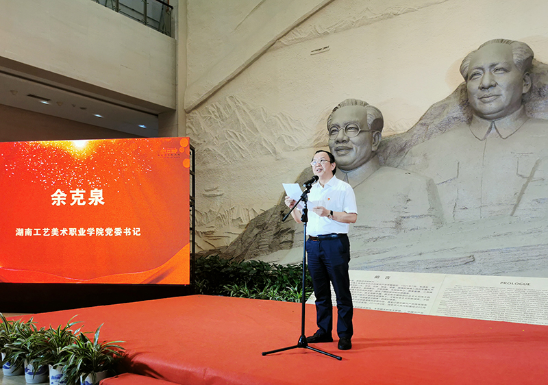 余克泉在讲话中回顾了在中国共产党百年征程中从三湘大地走出的毛泽东、刘少奇等老一辈革命家,发生的重大历史事件,涌现出的一大批抛头颅洒热血、牺牲奋斗的湘籍共产党人。他指出,学校与湖南党史陈列馆共建党性教育基地、思想政治教育基地,将充分发挥、利用好湖南厚重的革命文化和丰富的红色资源,通过组织参观、学习、体验等丰富多样、鲜活生动的形式,让广大师生更加深入地了解湖南的光辉历史,让革命精神融入血脉,把红色基因刻入骨髓,把老一辈革命家的优良传统传承下去、发扬光大,把老一辈更加开创的伟大事业不断推向前进。
