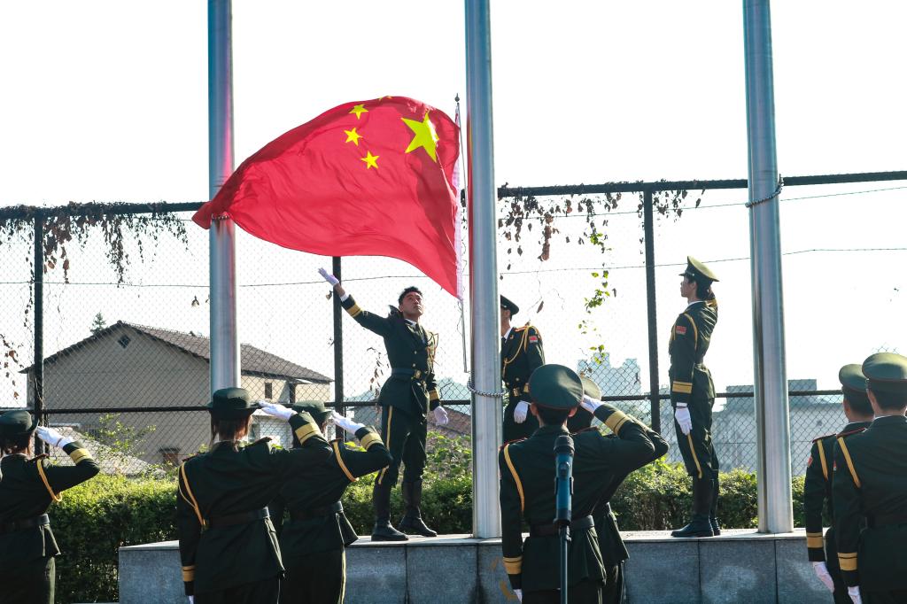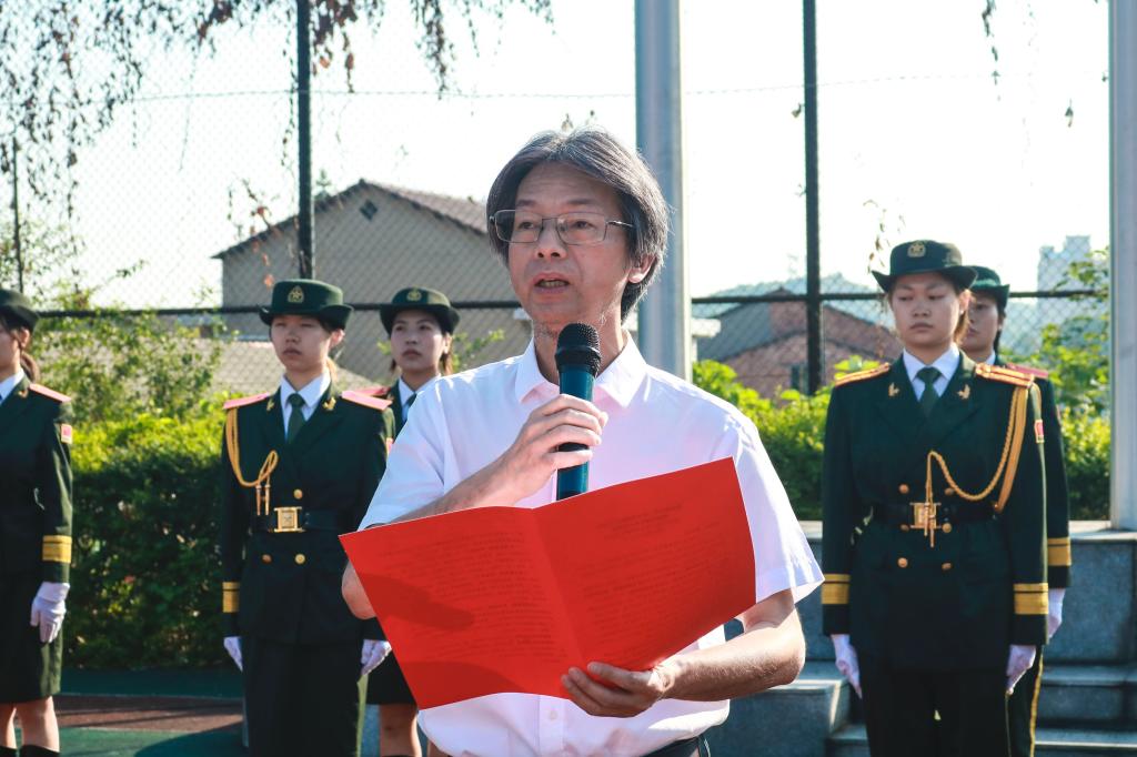 陈鸿俊发表国旗下的讲话。他指出,举行升旗仪式是为了弘扬爱国主义精神,激发广大青年学生爱党爱国爱校情怀,激励大家听党话、跟党走,自觉践行“请党放心、强国有我”的信念。