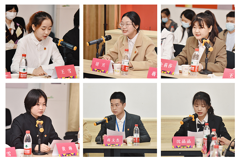 “作为新时代青年学子,要以“勤学”为本,以“善思”为根,以“笃行”为志,在实干中释放青春激情,为国家、为人民、为社会贡献自己的力量。”座谈会上,学生代表满怀激情,结合自身学习、生活实际积极踊跃发言,现场气氛热烈。“作为一名大二的学生,通过参加疫情防控、乡村振兴调研等志愿服务,深刻理解了当代青年的责任担当。”“我曾经是中国人民武装警察部队中的一员,曾在国旗与军旗下庄严宣誓:‘永远做党和人民的忠诚卫士。’虽然我已退役复学,但心中的那份信念却从未退却。”学生代表王雪、全莉莎、胡兴、黄琳、沈晶晶、蒋文杰等围绕新时代青年学子的理想、奋斗、担当等方面纷纷畅谈学习心得和成长收获。