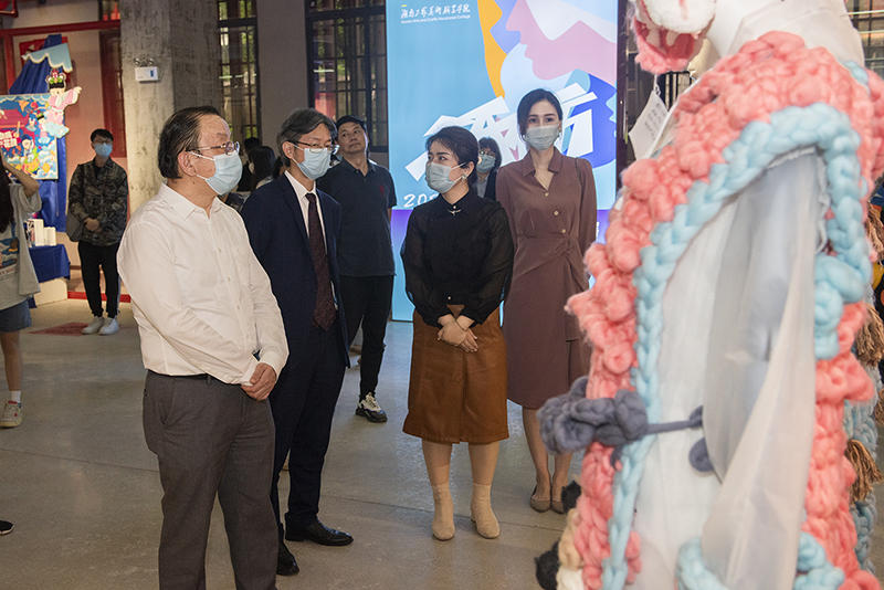 余克泉指出,本届毕业设计开放展示周展现了疫情之下师生风雨同舟、共克时艰、砥砺奋进的力量,展现了美院师生守正创新、锐意进取、奋勇争先的精神风貌,展现了师生精益求精的工匠精神和学校“至爱至美”的文化理念。来自全校5大专业群34个专业和专业方向的1657件(套)优秀毕业设计作品,体现了各专业学子的蓬勃激情和丰富的创造力,他们用优秀作品表达了对党的热爱、对人生的领悟、对艺术真谛的理解、对社会的关注与担当,以实际行动向党的二十大献礼。