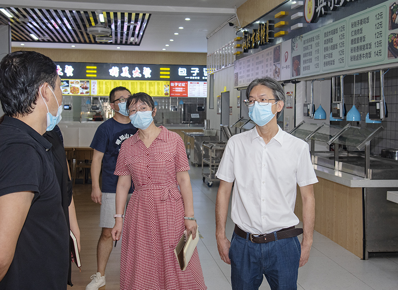 随后,陈鸿俊一行先后前往各教学学院、实训室、学生食堂、宿舍、超市等地进行检查,听取了相关负责人的汇报,详细了解教学保障、疫情防控、餐饮质量、消防安全、基建维修等各方面情况,对检查中发现的问题,要求相关部门尽快协调解决。