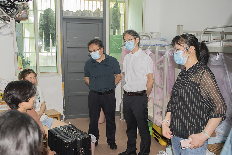 陈鸿俊、夏能权一行对新生疫情防控工作进行了详细了解,并叮嘱相关部门负责人必须牢牢绷紧疫情防控这根弦,严格落实疫情防控各项要求。他们实地考察了二级学院迎新接待点,认真了解新生入学手续办理流程,详细询问了新生报到登记情况,慰问了迎新第一线的工作人员和学生志愿者,对他们的辛勤付出给予充分肯定。