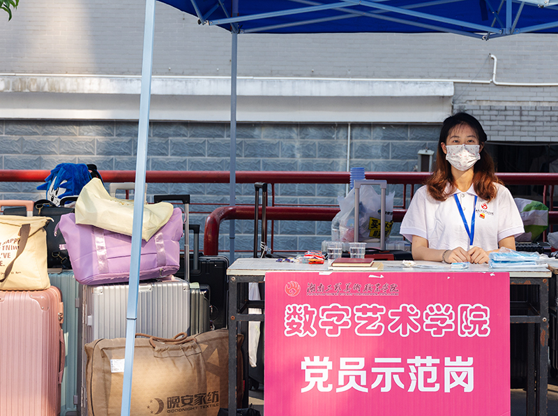 “同学,行李箱我来帮你提”“叔叔阿姨,请到这边休息一下,我带您孩子去报到”一名党员就是一面旗帜,在体育馆、教学楼、学生宿舍等接待点,党员志愿者用热情的态度、周到的服务让广大新生和家长们感受到美院的热情和温暖,在实践中增强党性观念,提高服务意识,发扬无私奉献精神,展示共产党员积极向上的良好风貌。“我现在是一名预备党员了,希望为迎接学弟学妹献出自己的一份力量,发挥党员的先锋作用。”环境艺术设计学院参加迎新工作的学生党员志愿者如是说。