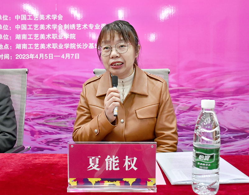 夏能权在致辞中向参加比赛的各位选手表示热烈欢迎,简要介绍了学校在湘绣艺术保护、传承与发展方面的基本情况。她表示,学校高度重视本次比赛工作,积极调动优势资源做好保障,确保高质量办好本次比赛。她希望本次比赛对加快刺绣行业技能人才培养起到积极的推动作用,为高校和行业之间的深入交流合作提供更加广阔的平台,汇聚起推动中国刺绣高质量发展的坚实力量,助力中国刺绣艺术在新时代、新征程创造新的辉煌。