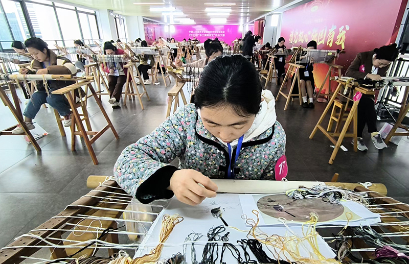 开幕式结束后,参赛选手依次进入刺绣实操场地进行技能实操考核。