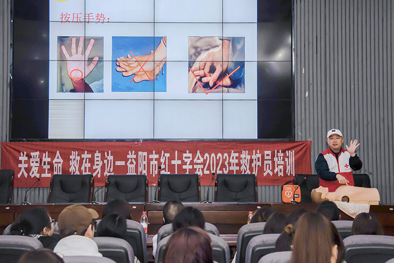 为提高广大青年学生安全意识和应急救援能力,守护生命健康安全,4月22日,学校邀请益阳市红十字会来校开展“自救互救,‘益’在行动”应急救护活动,200余名学生志愿者参加活动。