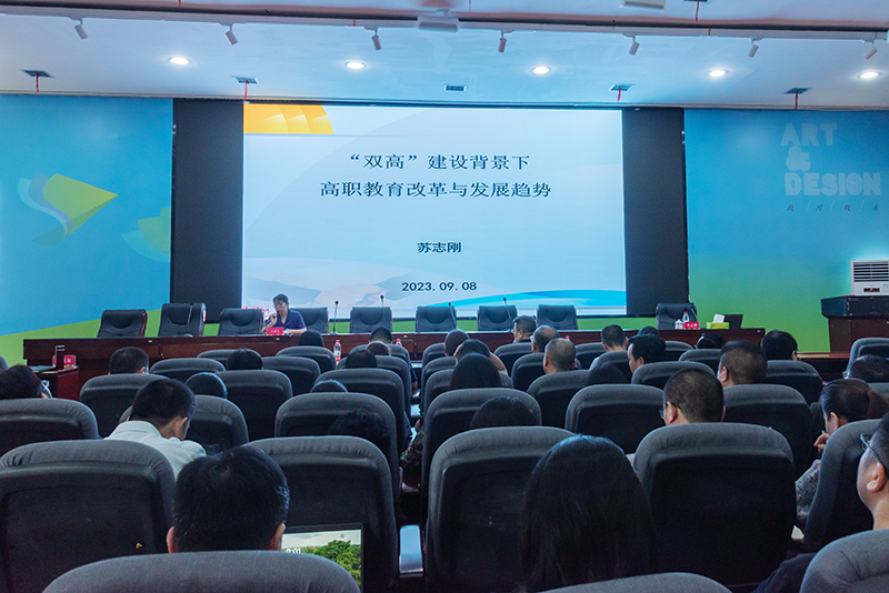 苏志刚以“‘双高’建设背景下高职教育改革与发展趋势”为题,深入分析了“双高”建设背景下的机遇与挑战,系统阐述了推进职业院校高质量发展的思路,提出了高职院校教育改革与发展的趋势。他指出,要积极探索省域现代职业教育体系建设新模式,打造市域产教联合体,打造行业产教融合共同体,实体化推进现代产业学院建设,进一步提升学校综合办学实力。