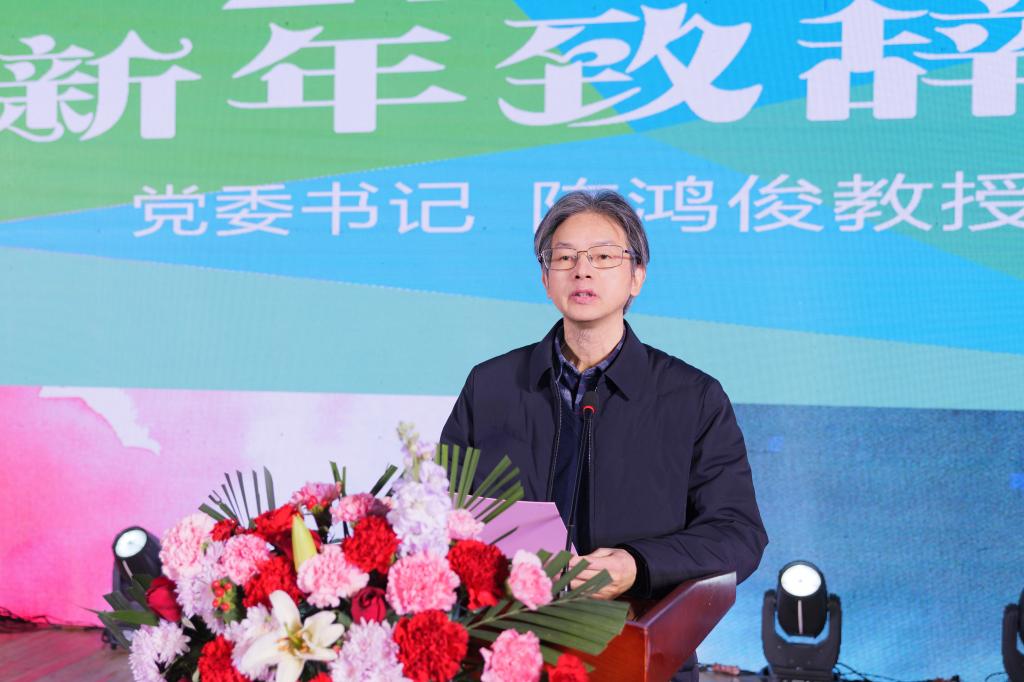 陈鸿俊致新年贺辞。他代表学校向全体师生以及关心、支持学校改革发展的各级领导、各界朋友致以衷心的感谢和诚挚的祝福。