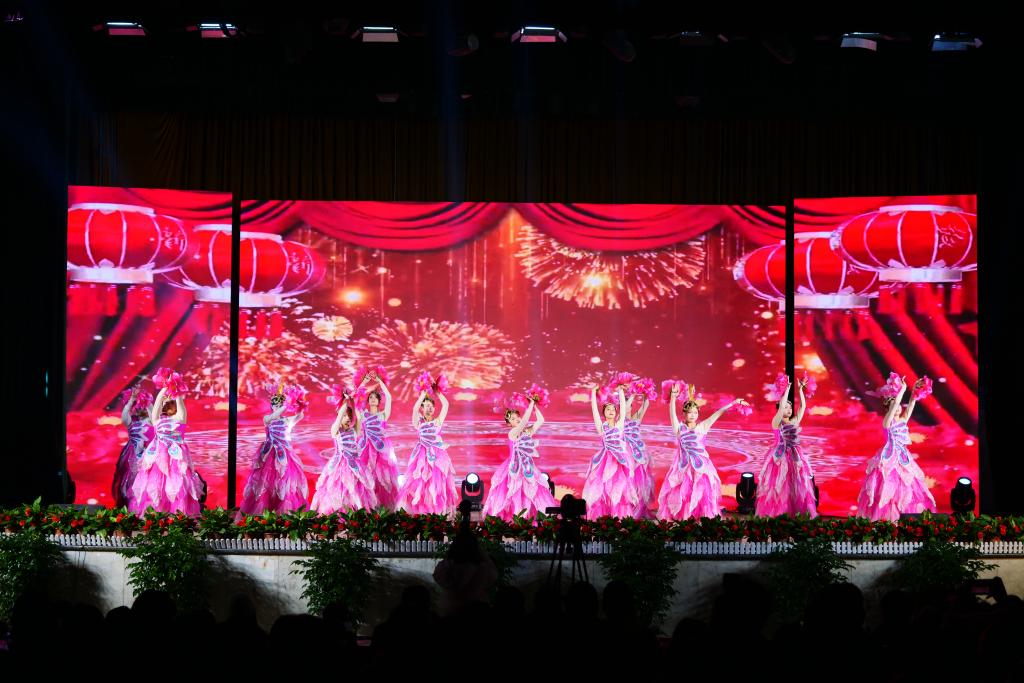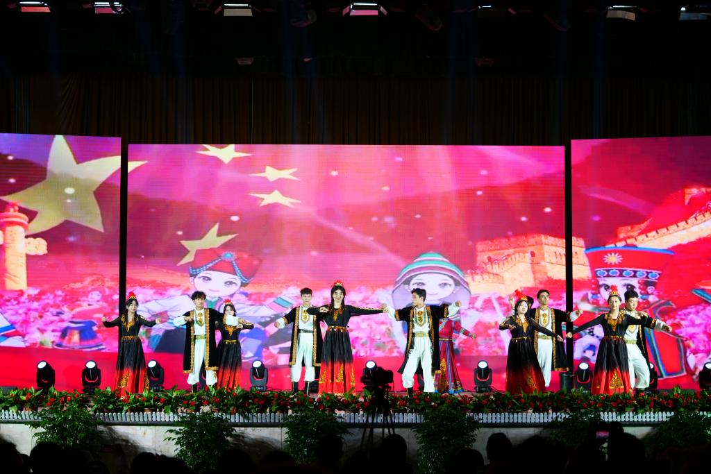 晚会在欢乐的开场舞《春暖中华》拉开序幕。整场晚会节目形式多样、内容丰富,为现场观众送上了一场别开生面、精彩绝伦的视听盛宴。舞蹈《耕读筑梦》歌颂了大国粮仓的守护者,激励大家为实现粮食安全和乡村振兴贡献新的力量;情景剧《等待》中两弹元勋邓稼先不怕牺牲、排除万难的那段伟大而又悲壮的岁月让观众热泪盈眶;万能辅导员们用优美的舞蹈《爱你》向可爱学生表白“永远做你的知心朋友”,赢得了现场的阵阵掌声;小品《诈诈呼呼》滑稽有趣的表演给观众们上了一堂轻松搞笑却又引人深思的防诈课;京剧说唱表演《成双》、古典舞《忆江南》等作品带领观众们沉浸式体验中国传统文化之美,让大家如痴如醉、赞叹不已;街舞《舞动青春》动感的舞姿尽情释放青春的活力,引发了现场的阵阵尖叫声;由少数民族学生带来的民族舞《民族团结一家亲》绽放出浓浓的异域风情,勾起了大家对美丽新疆等祖国大好河山的无限憧憬。