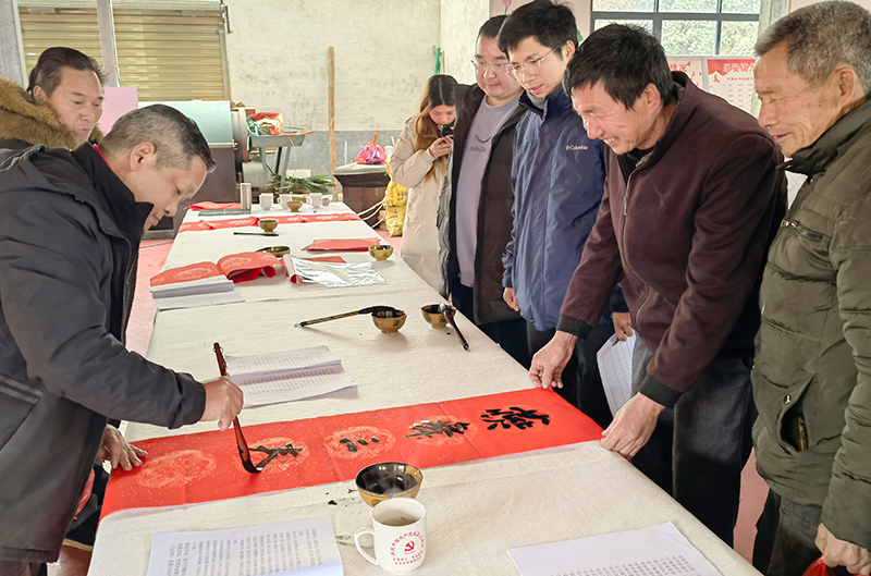 一副副散发着墨香的春联,充满着对新春的祝福,一张张饱含祝愿的“福”字,蕴含着对美好生活的向往,村民们的喜悦之情溢于言表。在短短三个小时里,书法家们创作了140余幅作品,让乡村百姓近距离感受到了中华优秀传统文化的魅力,为他们送上了“文化大餐”。