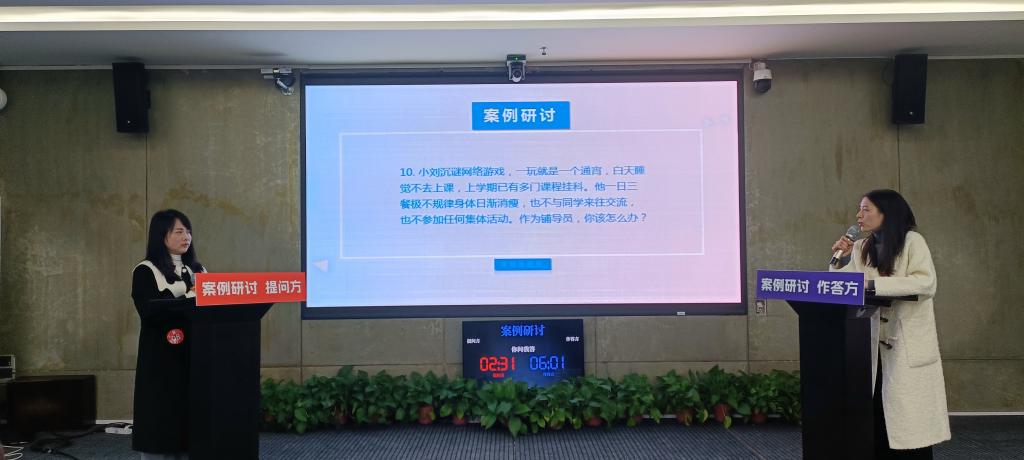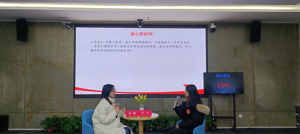 本届辅导员素质能力大赛决赛对标省赛赛制,共设四个比赛项目:描述定位、基础知识测试、案例研讨、谈心谈话。全面考察和展示全校辅导员队伍的政策理论水平、职业能力和专业素养。在描述定位环节,选手们通过随机推送的学生个人信息精准快速识别出所带学生的基本情况;在基础知识测试环节,重点考核选手们思政育人知识与育人策略;在案例研讨环节,选手们通过AB角随机组合,现场展示问题的解决思路和方法,总结育人经验;在谈心谈话环节,选手们通过分饰老师、学生角色并互换角色,重点考核辅导员的谈话沟通技巧和教育引导能力。经过激烈角逐,19名选手脱颖而出,段心怡等3人、刘姣等6人、姚莹等10人分别荣获大赛一二三等奖。