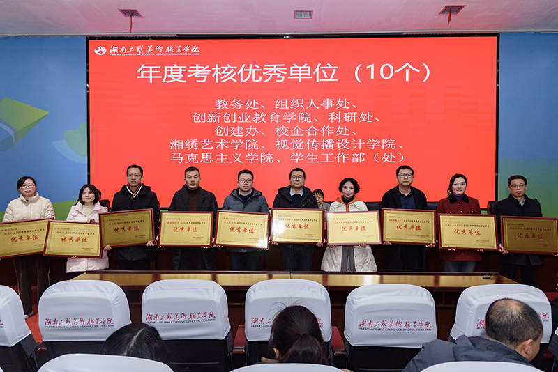 夏能权从十个方面总结了学校2023年度工作。一年来,学校圆满完成主题教育,深入学习宣传贯彻党的二十大精神;立项全省党建工作示范高校,党的全面领导不断加强;两大基建工程竣工,整合资源实现学校事业跨越式发展取得新突破;获国家“双高”中期绩效评价优秀等级,“双高”建设取得新成就;获国家级教学成果二等奖2项,专业建设与三教改革展现新作为;1个案例入选教育部高校学生心理健康教育指导典型案例,三全育人综合改革取得新成绩;成功举办第三届传统工艺振兴发展论坛并发布蓝皮书,科研与非遗传承保护进入新境界;第六次获评湖南省大学生就业创业“一把手工程”优秀单位,招生就业创业工作取得新进展;牵头组建全国数字创意行业产教融合共同体,校企合作与社会服务工作走出新天地;全年无安全责任事故,学校治理水平实现新提升。