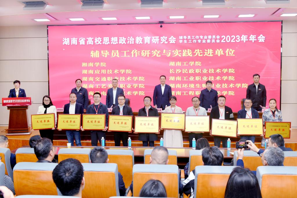 近日,湖南省高校思想政治教育研究会辅导员工作专业委员会、学生工作专业委员会2023年年会在吉首大学召开。学校荣获2023年湖南省高校辅导员工作研究与实践先进单位,环境艺术设计学院辅导员靳小水被评为湖南省高校辅导员工作研究与实践先进个人,数字艺术学院辅导员汪雅婷被评为湖南省高校学生工作研究与实践先进个人,心理健康教育中心夏晨、陈燕妮的育人案例《心灵“守护者”——“4+2”协同联动机制下的高职生心理危机干预案例辅导》被评为湖南省高校学生工作优秀育人案例。