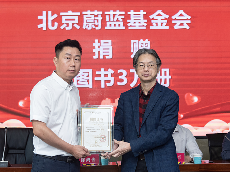 仪式上,捐赠单位负责人作了发言。陈鸿俊为捐赠单位颁发了捐赠证书。刘英武介绍了学校与捐赠单位的背景关系,他号召学校师生向学校捐赠自己的闲置书籍,为学校建设发展贡献一份力量。