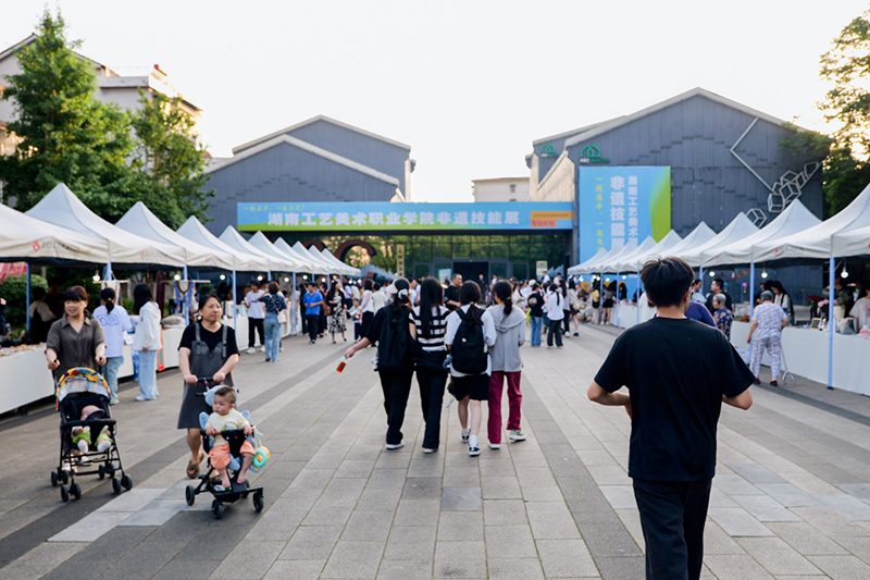 活动现场,各二级学院师生作品的售卖点前人头攒动,吸引了不少市民朋友的围观。湘绣、陶瓷、少数民族首饰、文创产品、木雕等师生创作的作品琳琅满目,受到大家的青睐。