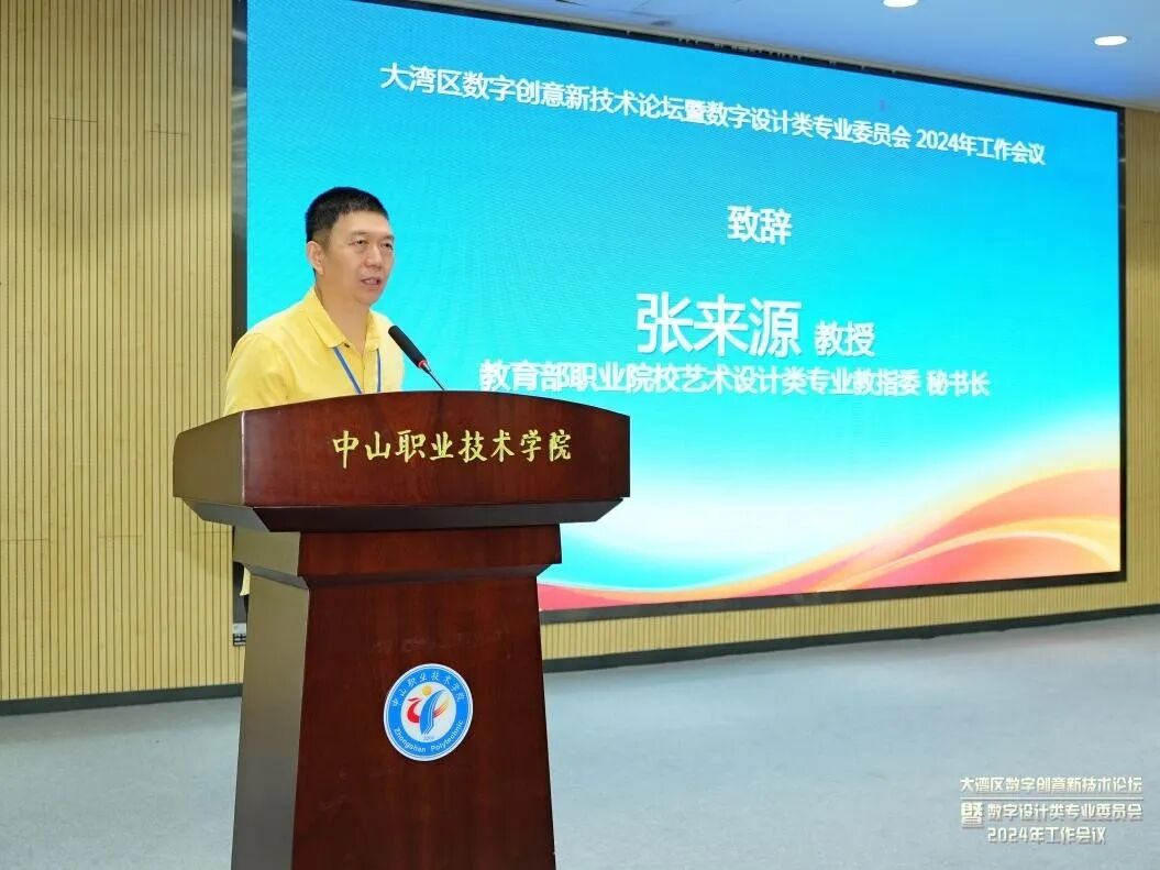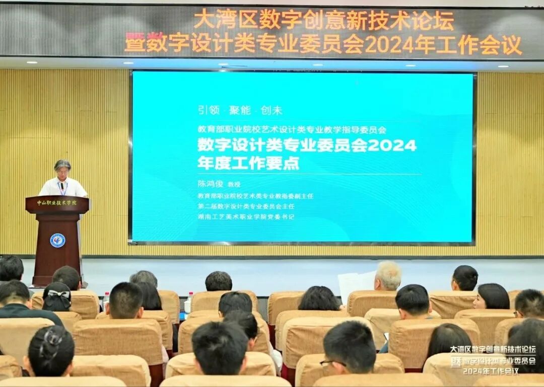 7月9日,大湾区数字创意新技术论坛暨教育部职业院校艺术设计类专业教学指导委员会数字设计类专业委员会2024年工作会议在广东中山举行。教育部职业院校艺术设计类专业教学指导委员会(以下简称“教指委”)数字设计类专业委员会(以下简称“数字设计专委会”)委员和来自全国48所院校、6家行企业的120余位代表参加会议。