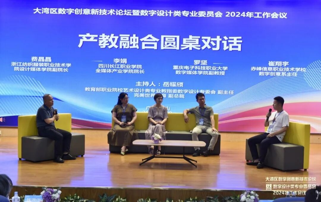 在圆桌论坛环节,数字设计专委会副主任岳耀颀与来自全国各地的院校、企业代表们就数字创意技术的最新趋势、产业学院的建设以及数字设计专业面临的挑战与机遇等话题进行了深入交流分享。
