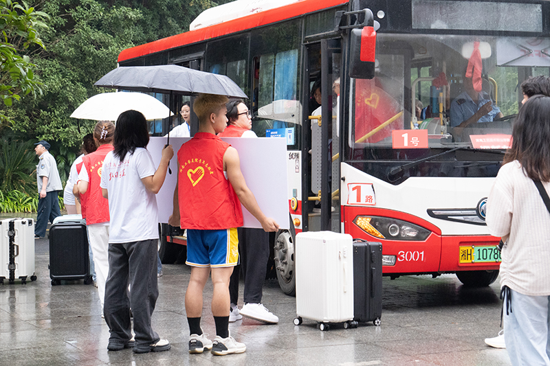 学校在益阳火车南站、益阳火车站、益阳汽车北站等设置了迎新站点,学生志愿者提前就位,轮流值班迎接新同学的到来。迎新专车一趟趟往返于学校和车站,不间断为新同学提供接站服务,及时、安全将新同学送到学校报到,为新同学入学第一站护航。