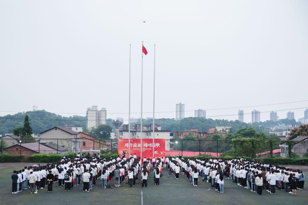 升旗仪式现场,全体学生立下铮铮誓言,立志做有理想、敢担当、能吃苦、肯奋斗的新时代好青年,为实现中华民族伟大复兴贡献青春力量!教师代表段心怡表示,将继续秉承为党育人、为国育才的初心使命,坚决落实立德树人根本任务,努力培养德智体美劳全面发展的社会主义建设者和接班人。学生代表郭浩以《以艺术之笔为时代添彩》为题作了发言。