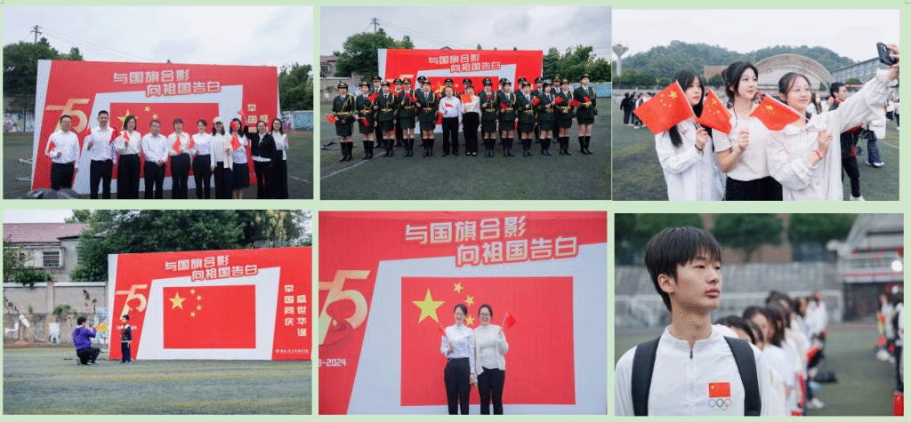 最后,师生们挥舞着国旗,伴随着《歌唱祖国》悠扬的旋律同唱一首歌,为伟大祖国送上最诚挚的祝福,将爱国之心凝聚在一起。在浓浓爱国情中,全体师生和国旗合影留念。