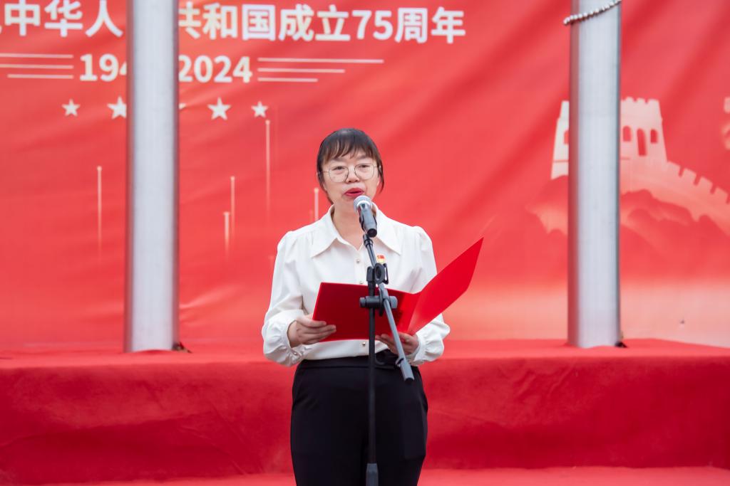 夏能权发表了“国旗下的讲话”。她深情回顾了新中国成立75年来经历艰苦卓绝的奋斗,取得的举世瞩目的成就,以及学校建校50年来的蓬勃发展历程。站在历史的新起点,她对青年学子提出殷切期望:一是坚定理想信念,涵养爱国之心。要坚定信仰、信念、信心,把个人的小我融入祖国和人民的大我之中,听党话、跟党走,奉献祖国、奉献人民,让爱国主义的伟大旗帜始终在心中高高飘扬。二勇于开拓创新,砥砺奋斗之志。要置身于实现中华民族伟大复兴的时代洪流中,勇做改革创新生力军,增强改革创新的能力本领,用最昂扬的斗志、最专注的投入、最恒久的坚持,脚踏实地,追逐梦想。三是刻苦钻研学习,磨炼报国之能。要不断加强历练、增长本领,让刻苦学习成为青春飞扬的动力,让增长才干成为青春搏击的能量。