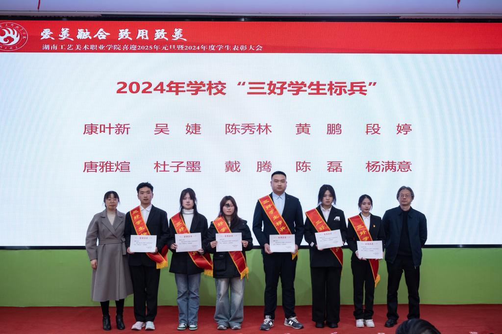 12月31日,学校“爱美融合 致用致美”喜迎2025年元旦暨2024年度学生表彰大会在致美楼5楼报告厅举行。党委书记陈鸿俊、校长夏能权出席并讲话,党委副书记汪泳波,副校长彭泽立、刘英武、张华,全体中层干部、全体辅导员、受表彰的学生代表以及各年级学生代表参加大会。会议由副校长彭泽立主持。长沙基地的师生参加视频会议。