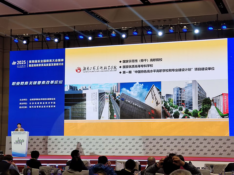 在25日下午举办的“职业教育关键要素改革”论坛上,夏能权作题为《“群”“链”融合 三聚共荣 打造高水平专业群》的典型发言,向与会人员介绍了我校专业群建设的经验与成果。近年来,学校聚焦湖湘工艺美术重点特色产业、聚焦湖湘工艺美术重点特色产业链高端人才培养、聚焦湖湘工艺美术特色产业核心文化和技艺,构建了与湖湘工艺美术产业深度对接的刺绣设计与工艺专业群;通过聚力建设“互培、互聘”的教学团队、“互需、互享”的教学资源、“互管、互用”的教学基地,建设了专业群与湖湘工艺美术产业高度共享的优质资源;通过创新“三双”(双导师、双基地、双交替)人才培养模式、创新“三共”(平台共用、项目共研、成果共享)技术研发模式、创新“三同”(同保护、同创新、同传播)文化传承模式,打造了支撑湖湘工艺美术产业创新发展的人才、技术和文化三大支点,为湖南文创产业迈上10000亿台阶做出了贡献。